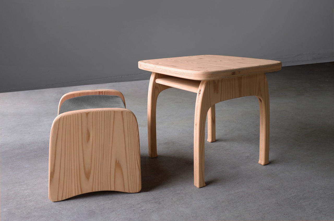 子供の成長と共に、木の経年変化も楽しみながら末永く使って欲しい、 そしていつかこの木が育った紀伊の山々に足を運んで欲しい、そんな想いを込めて作りました。