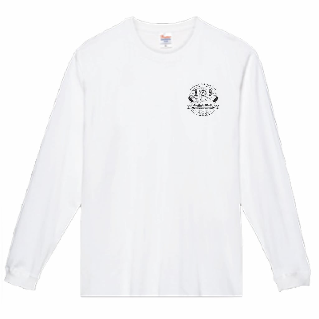 左胸に千品山林社のロゴを配した長袖Tシャツです。